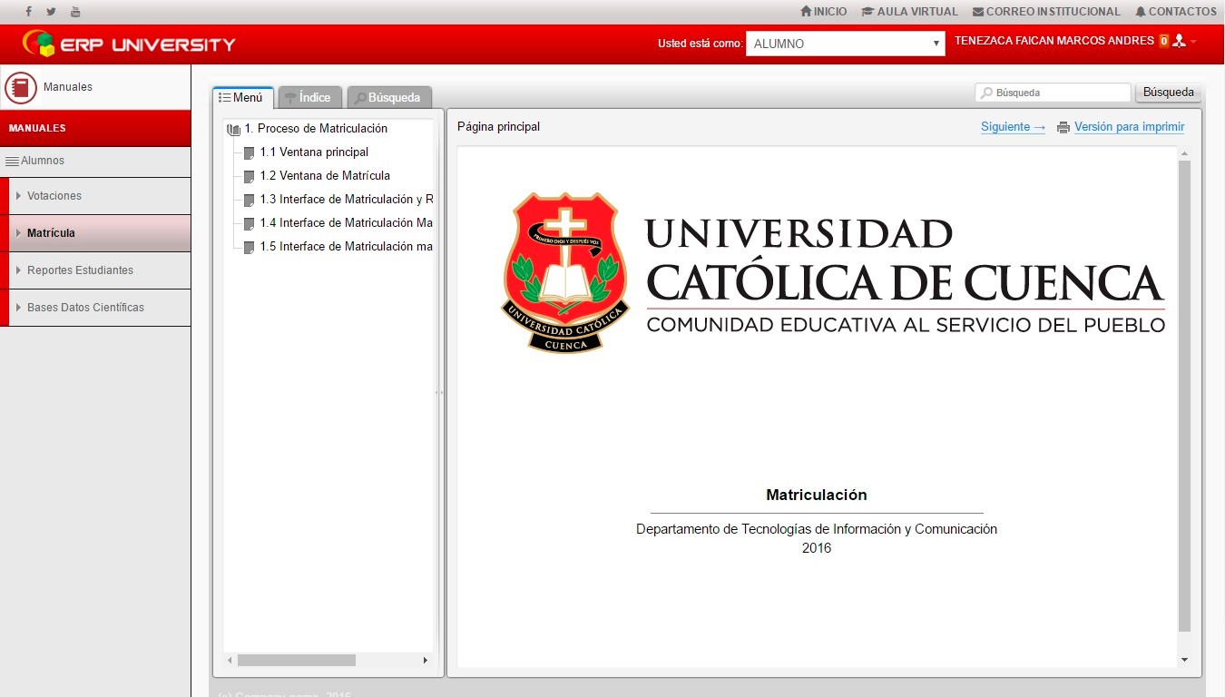 ERP University, posee manuales en línea para las áreas a las que el usuario tiene acceso. Para acceder a estos documentos seguiremos el siguiente proceso: