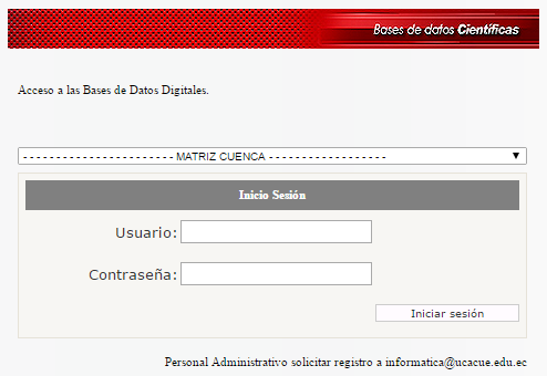 Al precionar el botón se presentará la pantalla de las Bases de Datos Científicas.