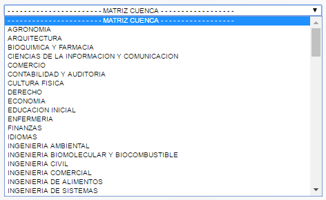 Seleccione de la lista desplegable la carrera a la que pertenece (revisar la Sede).